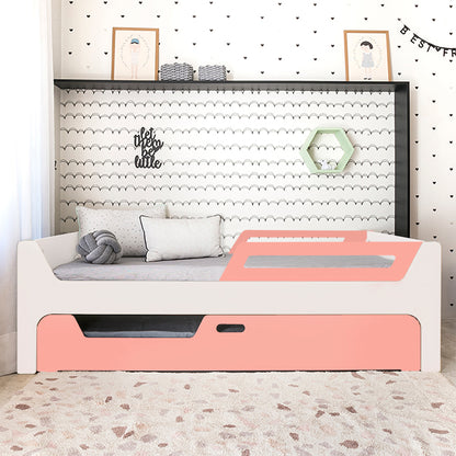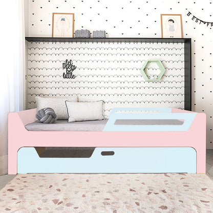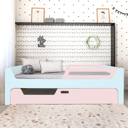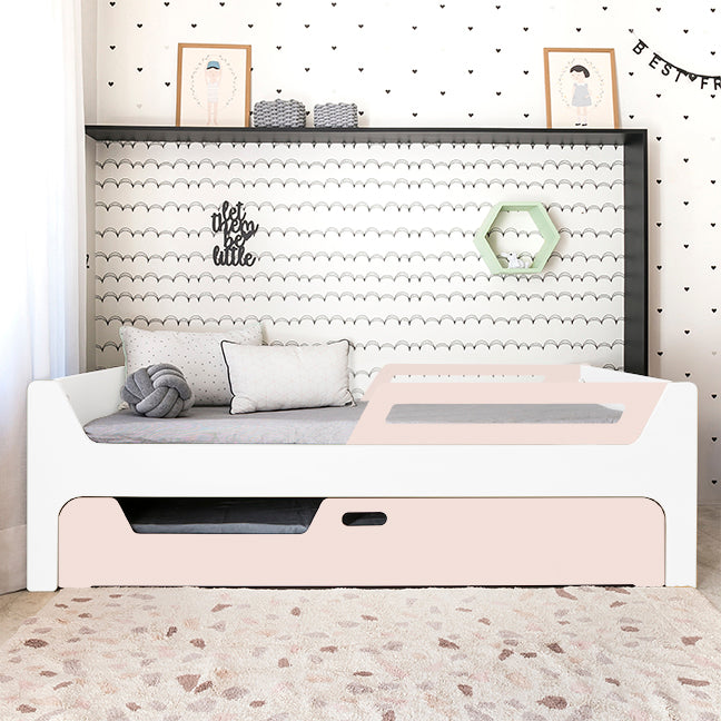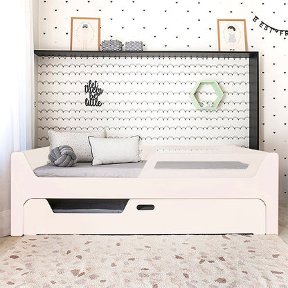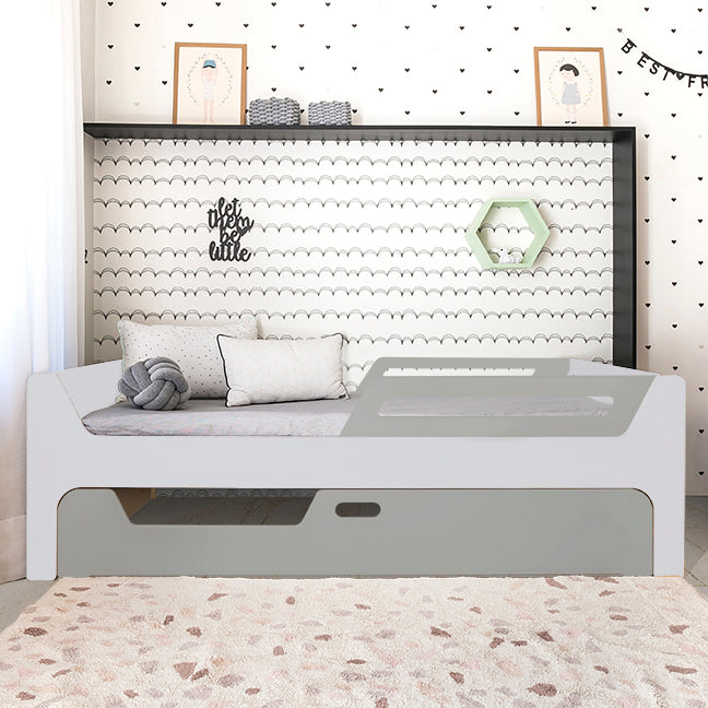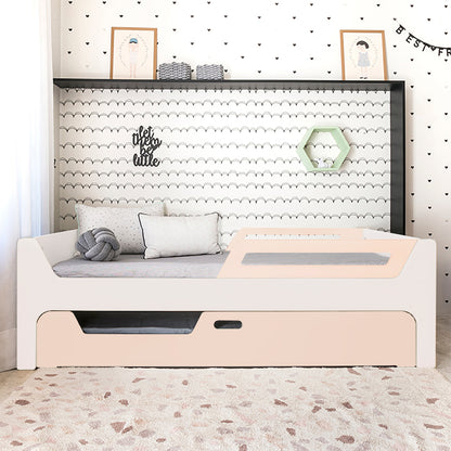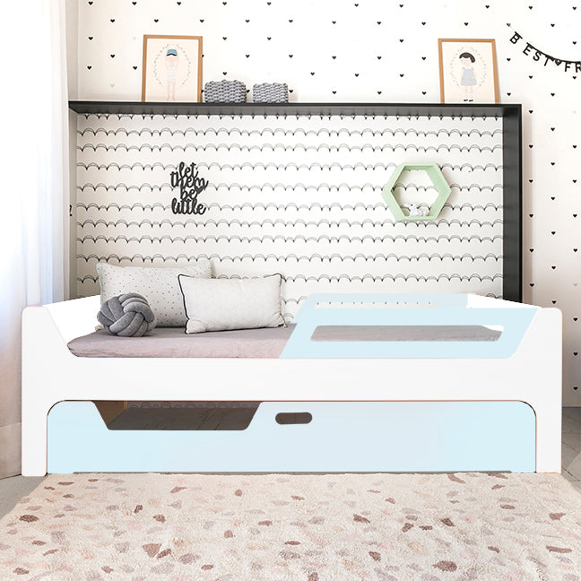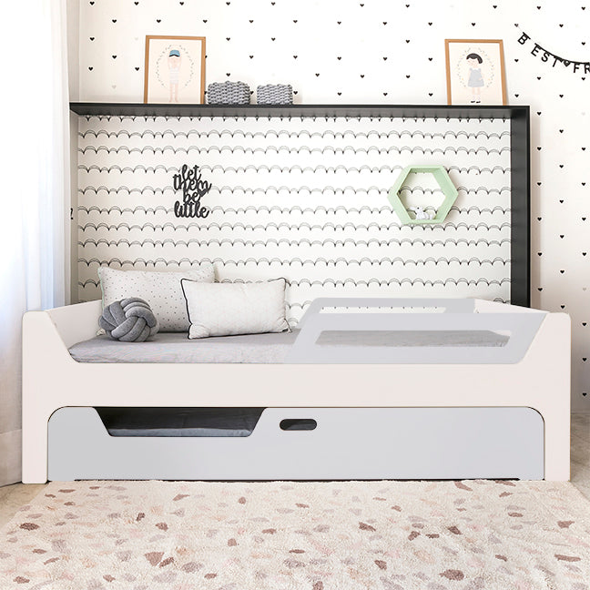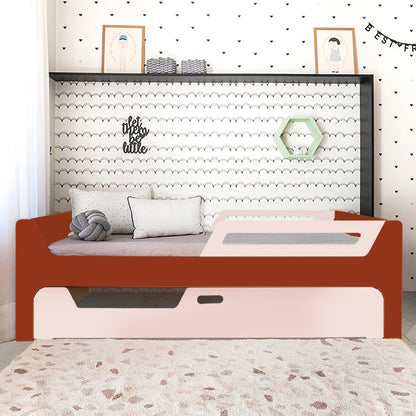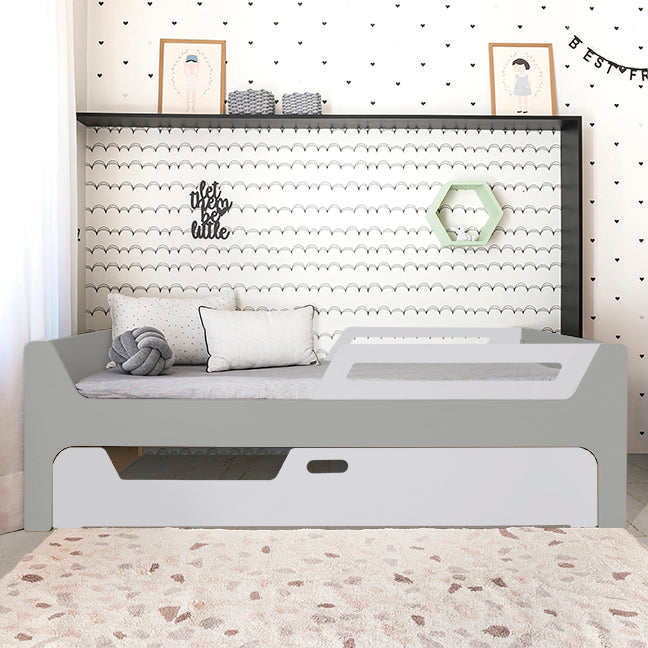A Bicama Anis conta com duas camas com grades. A Cama superior pode receber até 4 grades removíveis. 2 na cabeceira e 2 inferiores, permitindo cinco configurações: com 4, 3, 2, 1 ou sem grades, adaptando-se às suas necessidades.