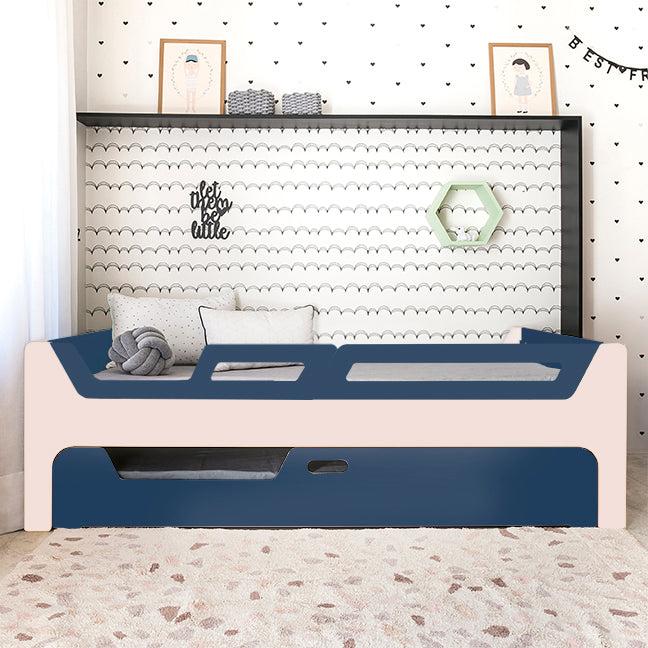 A Bicama Anis conta com duas camas com grades. A Cama superior pode receber até 4 grades removíveis. 2 na cabeceira e 2 inferiores, permitindo cinco configurações: com 4, 3, 2, 1 ou sem grades, adaptando-se às suas necessidades.