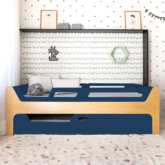 A Bicama Anis conta com duas camas com grades. A Cama superior pode receber até 4 grades removíveis. 2 na cabeceira e 2 inferiores, permitindo cinco configurações: com 4, 3, 2, 1 ou sem grades, adaptando-se às suas necessidades.