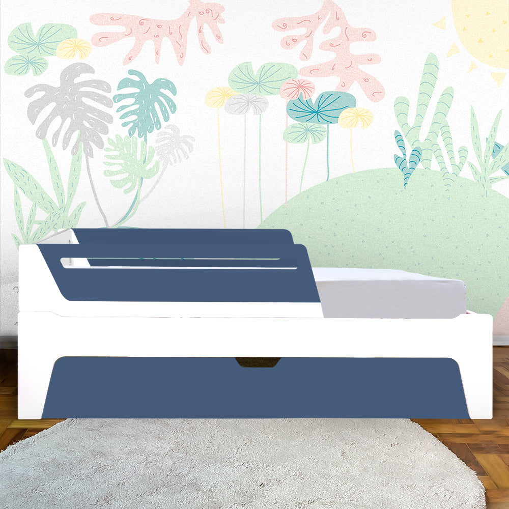A Cama Evolutiva Amarilis possui duas grades removíveis, mais altas e compridas, e permite o uso de cama auxiliar e módulo adicional de cabeceira na posição elevada.