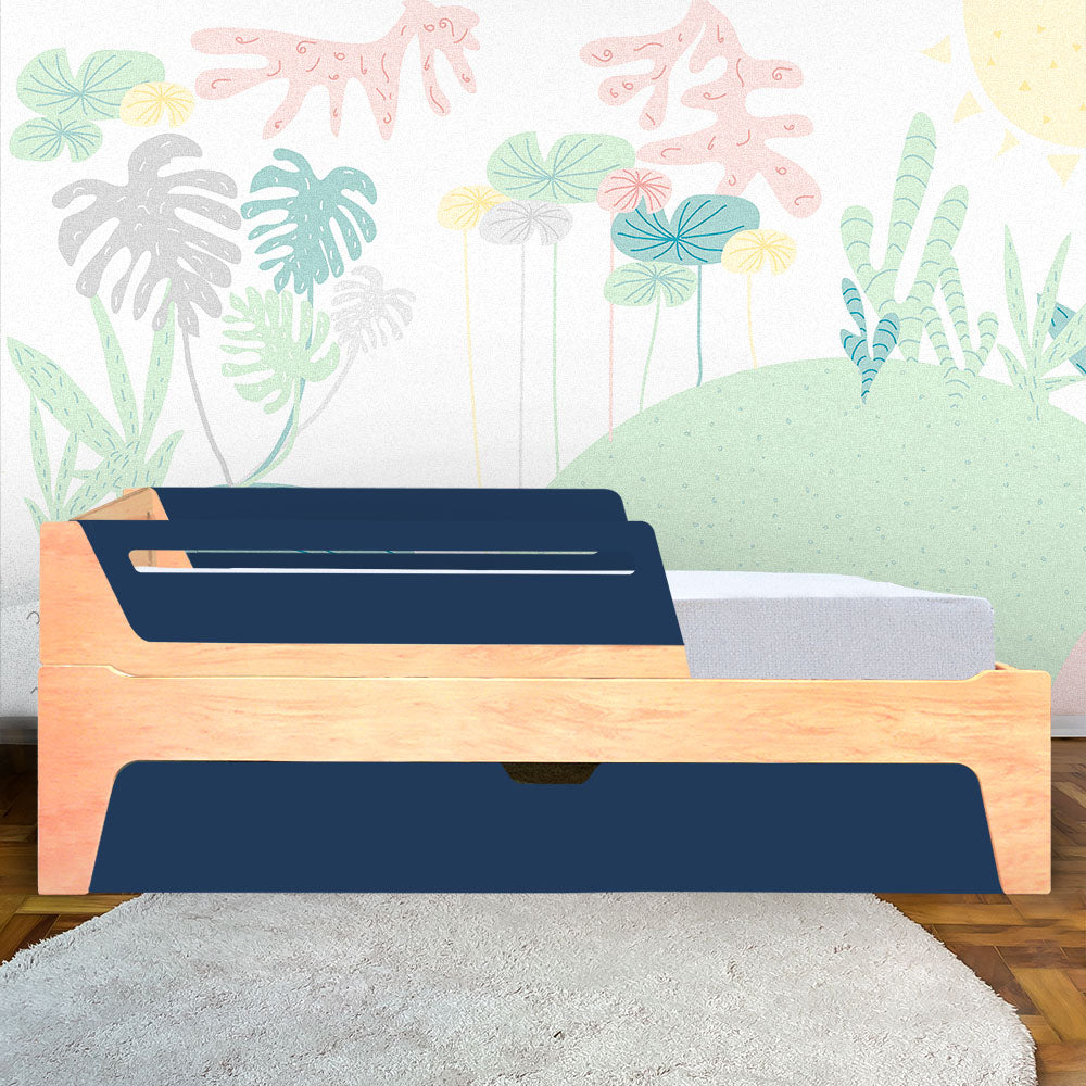 A Cama Evolutiva Amarilis possui duas grades removíveis, mais altas e compridas, e permite o uso de cama auxiliar e módulo adicional de cabeceira na posição elevada.