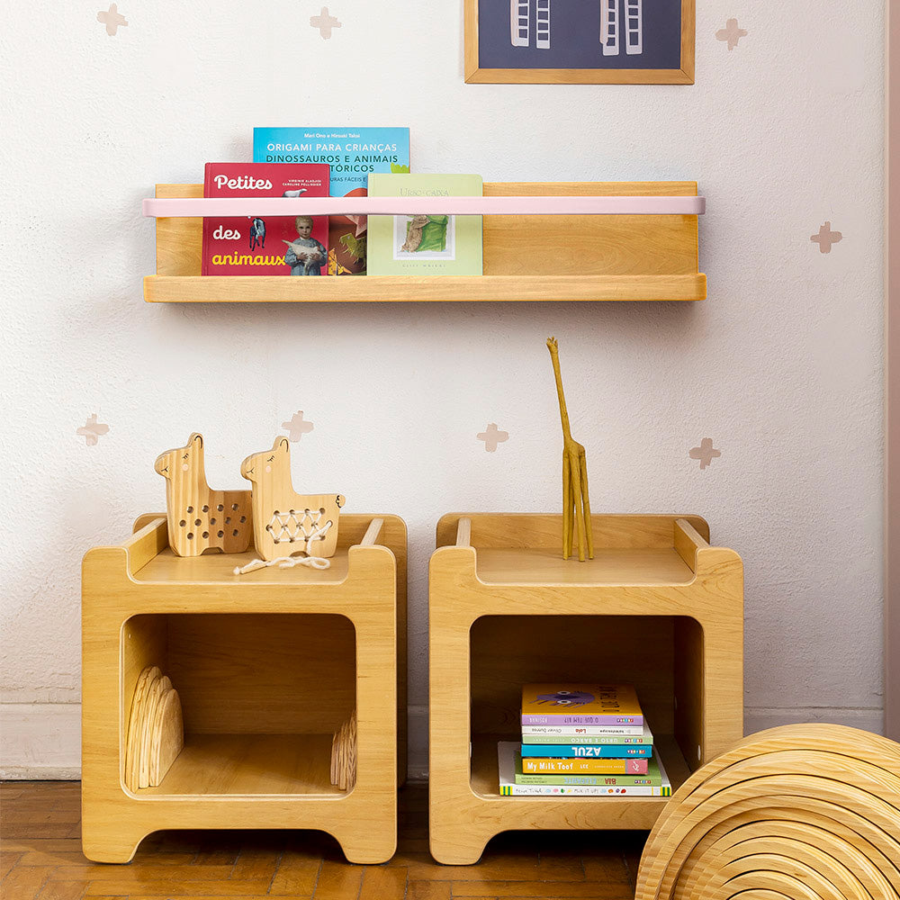 Porta Livros | Marfim + Barra Rosa (F141)